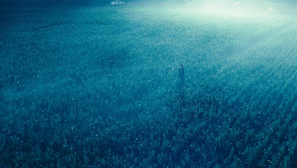 The final cut of The Animal Kingdom, however, still appeals on a strictly aesthetic level. David Cailley’s camerawork impresses, especially during the pinnacle where the cinematography tracks Émile as he runs from authorities and stumbles onto a biodiverse utopia of creatures and animals. Cailley’s nighttime cinematography occasionally elevates the genre material to something horror-adjacent, while the daylight work maintains the verisimilar connection to life in modern France. All the while, the project on the whole is well-designed without ever being too polished in the ugly, glossy way that these sorts of films tend to go for. The creature design is also marvelous from start to finish; from a giraffe-sized stick bug and some Dementor look-alikes to the slow transformation of Fix (Tom Mercier) into a stirring and mildly unsettling bird of prey, the visual effects, make-up, and costume departments put forth exceptional work, lending the inhabitants of this universe distinctive designs without breaking the bank on uninspired Marvelized creature creation. Still, good-looking as the breakfast spread may be, it’s tough to shake the feeling that the omelet would have been better.