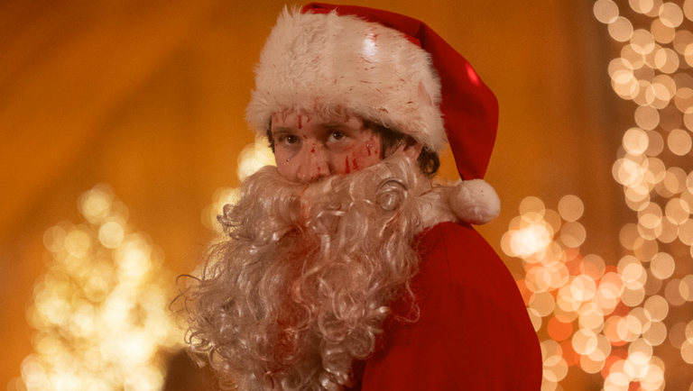 The Santa in question here is Billy Chapman (Rohan Campbell, best known as Corey from Halloween Ends), who lives life as a drifter, hiding his crimes as he bounces from town to town. As a young boy, Billy had an upsetting encounter with his grandfather, who passed away in a horrifying manner right before his very eyes. Almost immediately after this encounter, his parents were murdered by Charlie (Mark Acheson), a psychotic motorist dressed as Saint Nick. When Billy’s mother manages to mortally wound Charlie before passing, Charlie passes his curse off to Billy, assuming the new role of a killer Santa, with Charlie’s spirit inhabiting Billy’s body, acting as a guide to slaughter deserving victims. 10 years later, Billy is a seasoned serial killer, even keeping a makeshift advent calendar that collects the blood of his victims. His transient lifestyle lands him in Hatchett, Minnesota, where he soon acquires a job as an employee at a Christmas store, befriending co-worker Pamela (Ruby Modine) in the process. Billy does his best to keep up a normal façade, but the spirit of Charlie comes calling, especially as the more unpleasant denizens of Hatchett make themselves known.