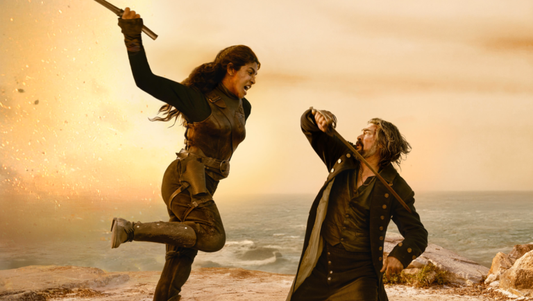 Priyanka Chopra Jonas, Bollywood favorite turned international star, plays a former indentured servant (slave, though she didn’t use that word) turned retired pirate captain in the 1840s. She looks after her sister-in-law (Safia Oakley-Green), who does absolutely nothing, and her own physically disabled son (Vedanten Naidoo). Her husband, T.H. Bodden (Ismael Cruz Córdova), is out at sea when an old rival pirate, Captain Connor (Karl Urban), shows up and disrupts her peaceful domestic life on Cayman Brac, one of the three Cayman Islands. Her nickname once upon a time was “Bloody Mary,” though she, like the Apostle Paul upon his conversion, now goes by a new name: Ercell Bodden. But now Ercell picks up her old blade — and an assortment of other weapons, including an alien-looking harmonica pistol where the bullet cartridge protrudes horizontally from the side of the gun — to become Bloody Mary again in order to keep her family alive.