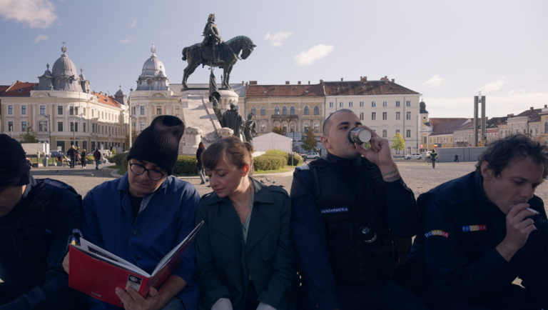 Radu Jude: That element wasn’t there from the beginning [of the project] because it was an old idea that started from a news item, and then it developed little by little. I abandoned it a few times, got back to it, and actually, in the last 10 years, urban development [increasingly] became a big money industry, and in many cases something quite ugly — there’s a mix of corporate greediness with local political corruption and disregard of the law, a disrespect of the quality of buildings, disrespect of any ecological or urban standards of living. The quality of everything is a mess underneath the shiny advertisements for this [renewal]. So at some point, these two ideas converged — the one about morality, the topic of the film, and then I decided to place it in a space, in a specific city, in a specific moment, and you are right to point that making visible this chaos, and this ugliness, and this urban construction — which is also an urban destruction, the destruction of public spaces.