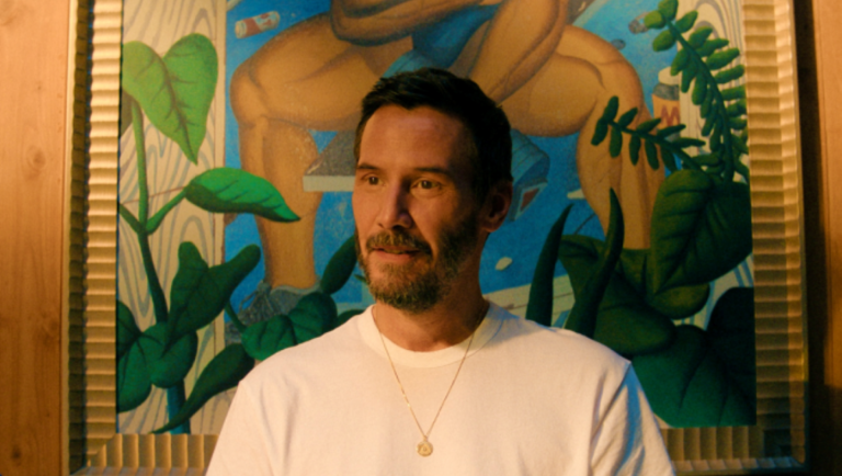 Hill’s film is steeped in the language of therapy as well as addiction; the entire apology tour is essentially the eighth step of AA. But Outcome skips over some important parts of “doing the work,” particularly all that pesky business of taking a moral inventory. The ruinous structural flaw to the film, which runs a brisk 83 minutes but feels twice as long, is that it conceives of Reef’s journey toward redemption and grace as a mystery where he needs to realize what a giant schmuck he’s been his whole life. The film is essentially The Hangover but instead of comedic misadventures involving home dentistry, shotgun weddings, and Mike Tyson’s tiger, it’s the affable Reeves repeatedly walking into buzzsaws as assorted former loved ones open up on him in a series of two-hander exchanges which Hill stages like an emotional flaying. Time and again, Reef is forced to sit and be confronted by his past callousness and lack of loyalty, which seemingly is as much of a surprise to him as it to the viewer. Either unwilling or unable to defend himself, Reef smiles and nods as a who’s who of random cameos made up of the filmmaker’s famous friends turn up to rip metaphorical chunks from the character’s carcass.
