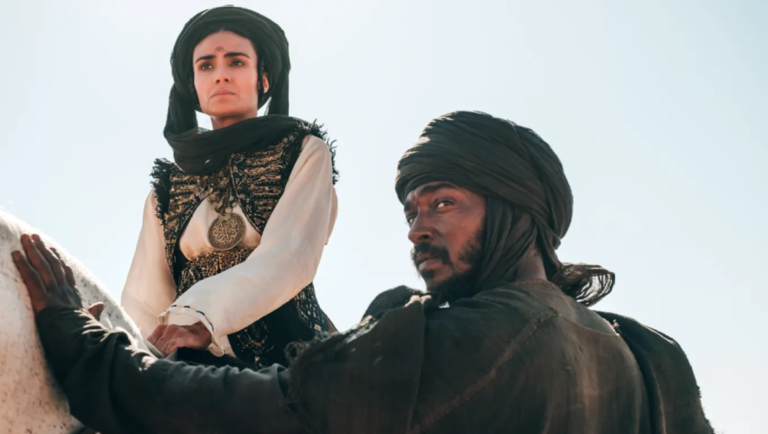 In a pre-Islamic 7th century Arabia, Princess Hind (Aiysha Hart) chooses to rebel instead of reducing herself to the captivity of the Sasanian Emperor Kisra (Kingsley) as his concubine. She escapes to the desert with her father, the recently deposed King Numan (Ghassan Massoud), and, with a team of bandits led by Jalabzeen (Sharlto Copley) on their tail, the former king and princess desperately solicit the help of the renegade though reserved bandit Hanzala (Mackie). The film’s undisputed best scene is its history-making climactic battle, a clash known to history as the Battle of Dhu Qar. With the Sasanians being a Persian empire and the historical battle taking place in what is today Southern Iraq, this is a somewhat interestingly timed release given the state of Arab-Iranian geopolitics. The Arab tribes unifying in resistance under Hind to resist a Persian tyrant is simultaneously inspiring and politically thorny. Iranian cultural critics have, unsurprisingly, criticized the movie as “historical revisionism.”